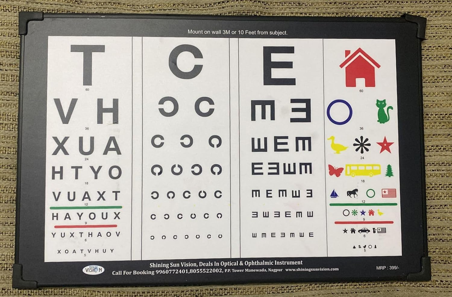 All in one Vision Testing Chart for 3M or 10 feet Testing Framed Chart